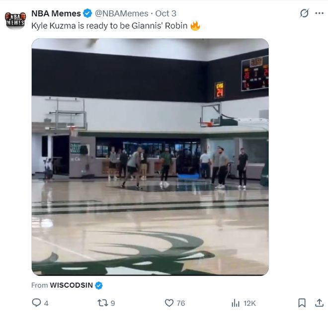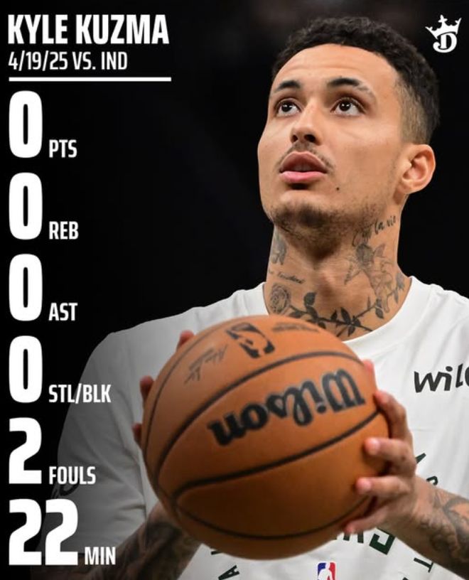 这场比赛最扎眼的当属0分哥凯尔-库兹马,他在今年4月19日对阵步行者的比赛中22分钟里怒砍0分0篮板0助攻0抢断0盖帽,这张图在本场比赛的赛后又被雄鹿球迷所疯转。